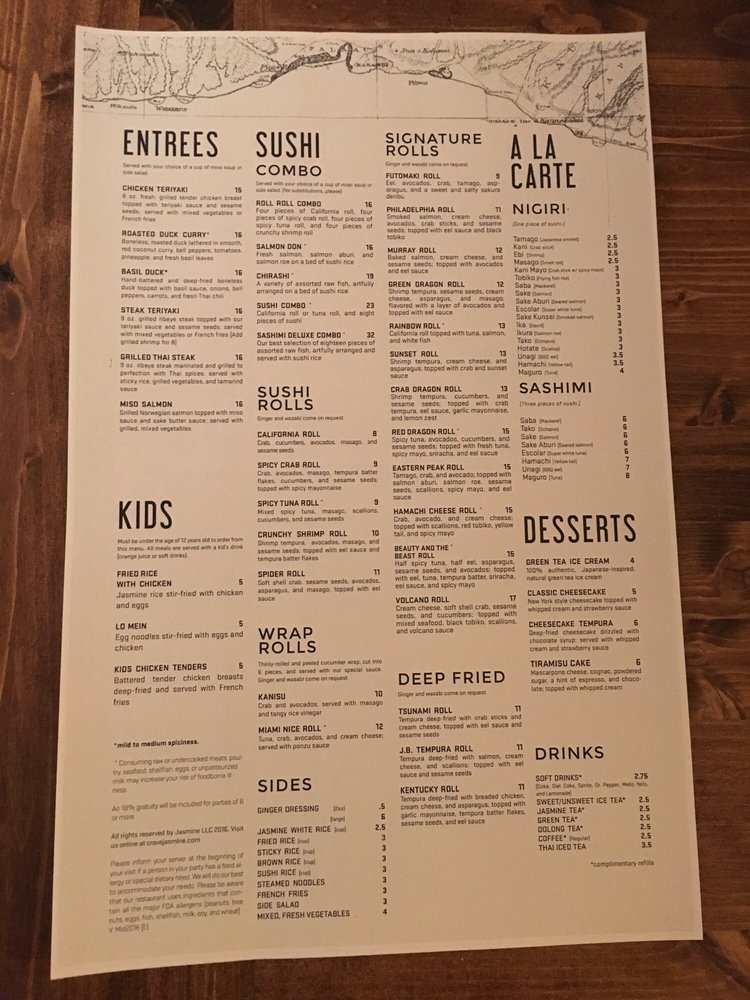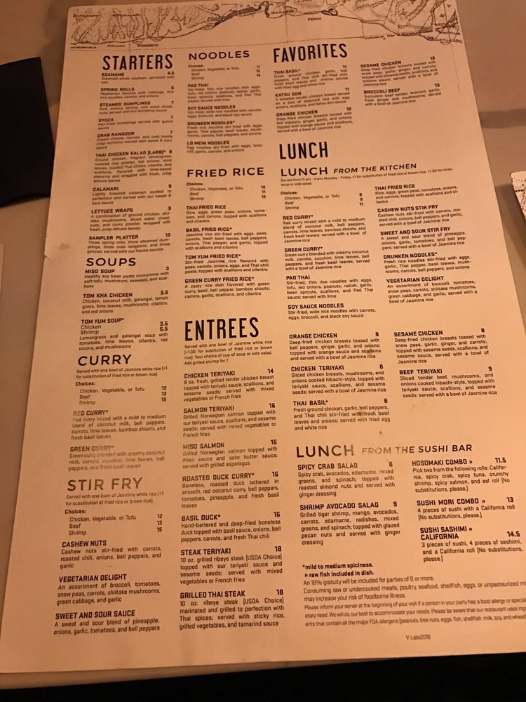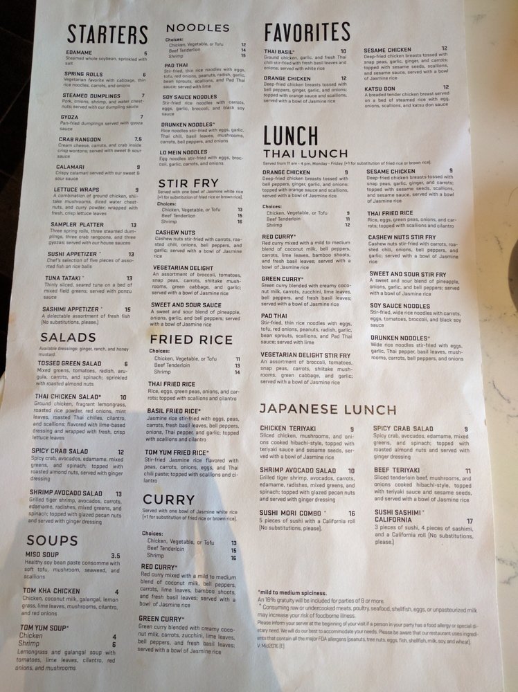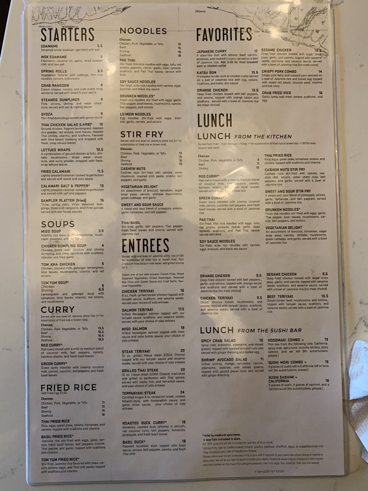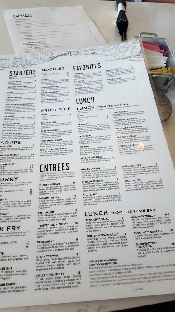 Introducing the menu at The Eastern Peak, a Thai-Asian fusion and sushi bar in Nashville, TN. This trendy yet intimate spot offers a range of vegan and vegetarian options alongside traditional dishes. Customers rave about the 5 Spice Chinese Old Fashioned, fresh sushi rolls like TNT and Red Dragon, and flavorful pad Thai. The restaurant's clean and welcoming atmosphere, coupled with attentive service and a diverse menu, make it a go-to spot for both locals and visitors. Standout dishes include the basil chicken fried rice, Wok edamame, and chicken teriyaki. Whether you're in the mood for a quick lunch or a relaxed dinner, The Eastern Peak delivers on taste and ambiance. Don't miss out on their happy hour specials and extensive drink selection to complement your meal. With a solid reputation for quality and consistency, this restaurant is a must-visit for anyone craving delicious Asian cuisine in a laid-back setting.